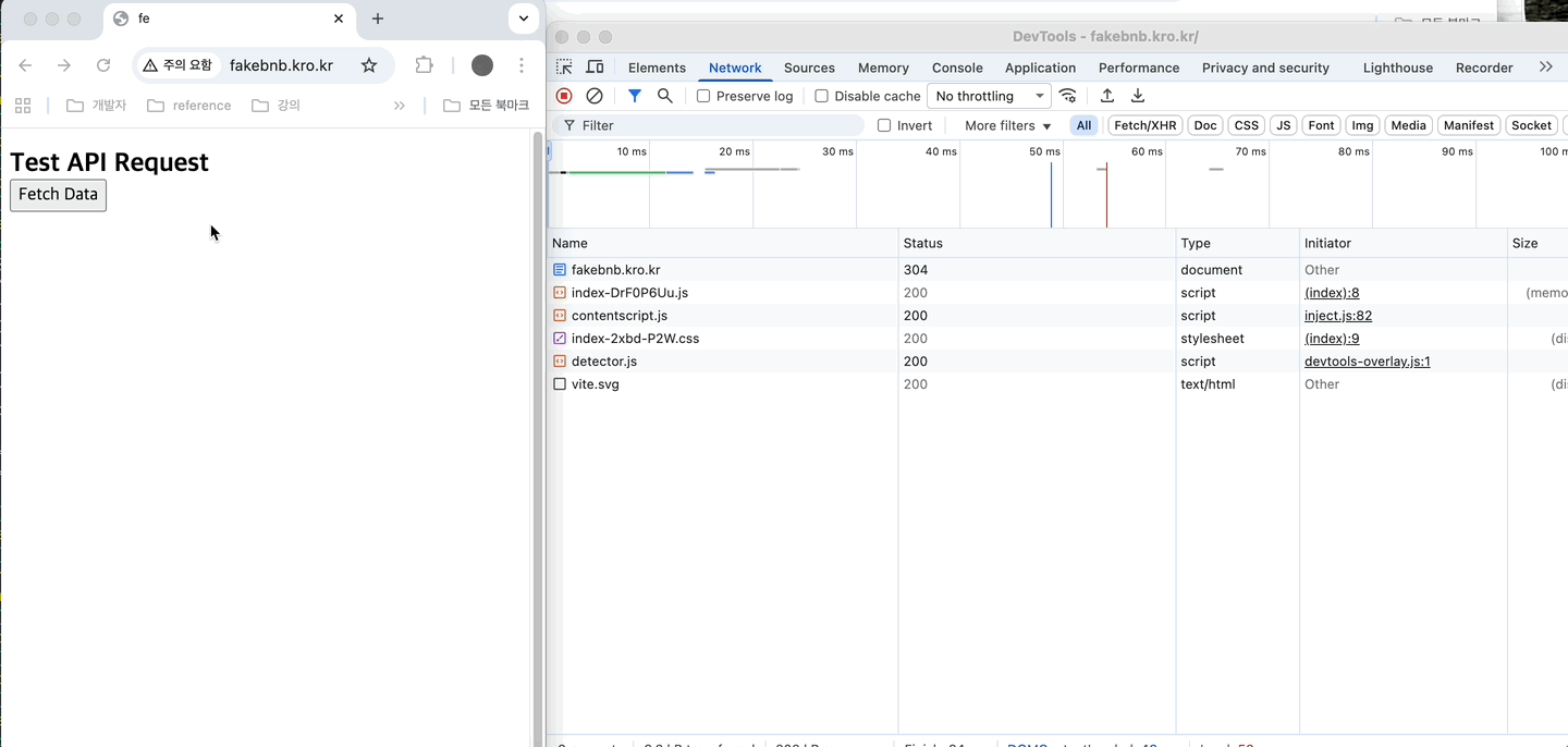 한 가지 궁금했던 것은 "어쨌든 fakbnb.kro.kr 도메인에서 localhost:3000으로 요청을 보내니 CORS 문제가 여전히 존재하지 않는가?" 였다.