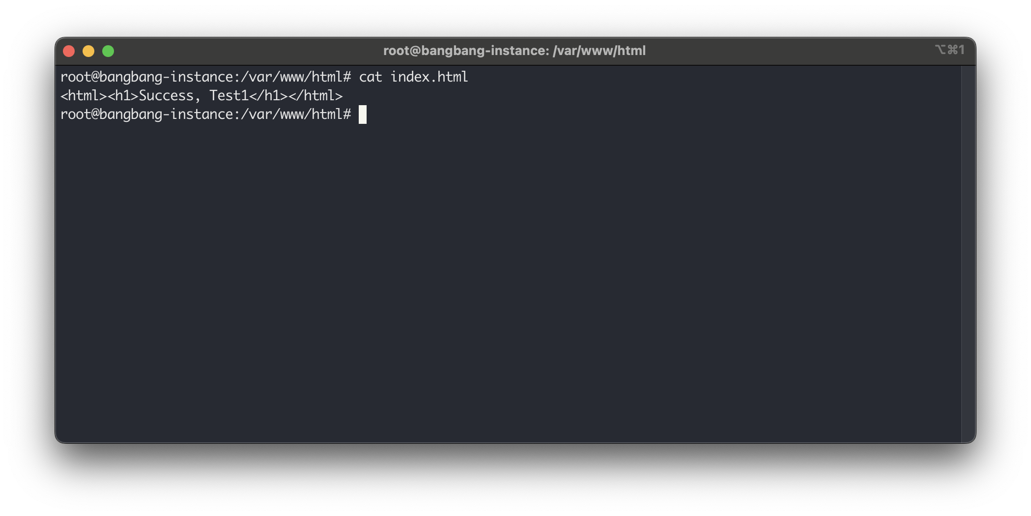 정상적으로 서버를 통해 정적 파일이 서빙될 수 있는지 확인해보았다. 기본적으로 Nginx를 설치하면 root 경로는 /var/www/html로 설정이 되었고 해당 위치에 index.html을 생성하여 저장해주었다.