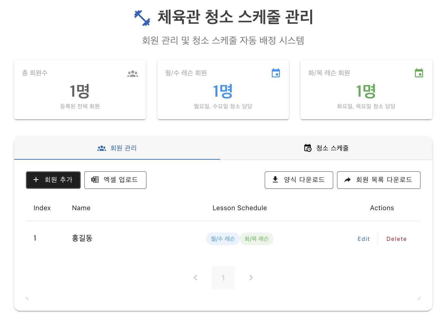 체육관 청소 당번을 자동으로 랜덤하게 배정하는 시스템을 제공