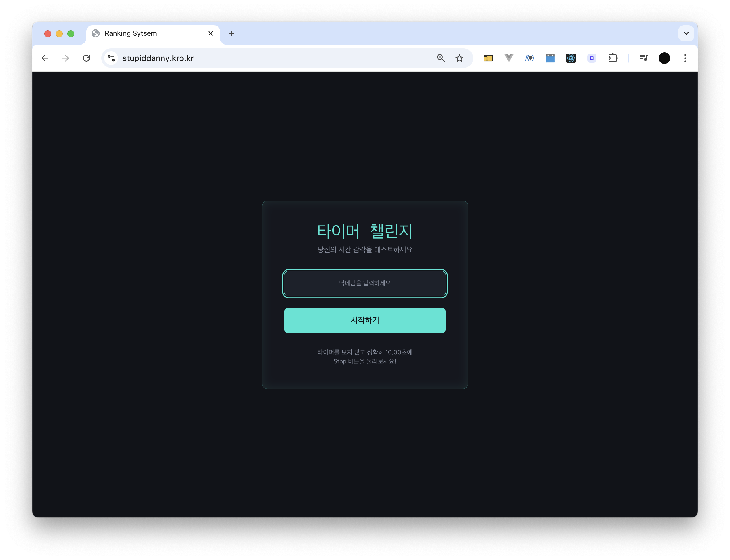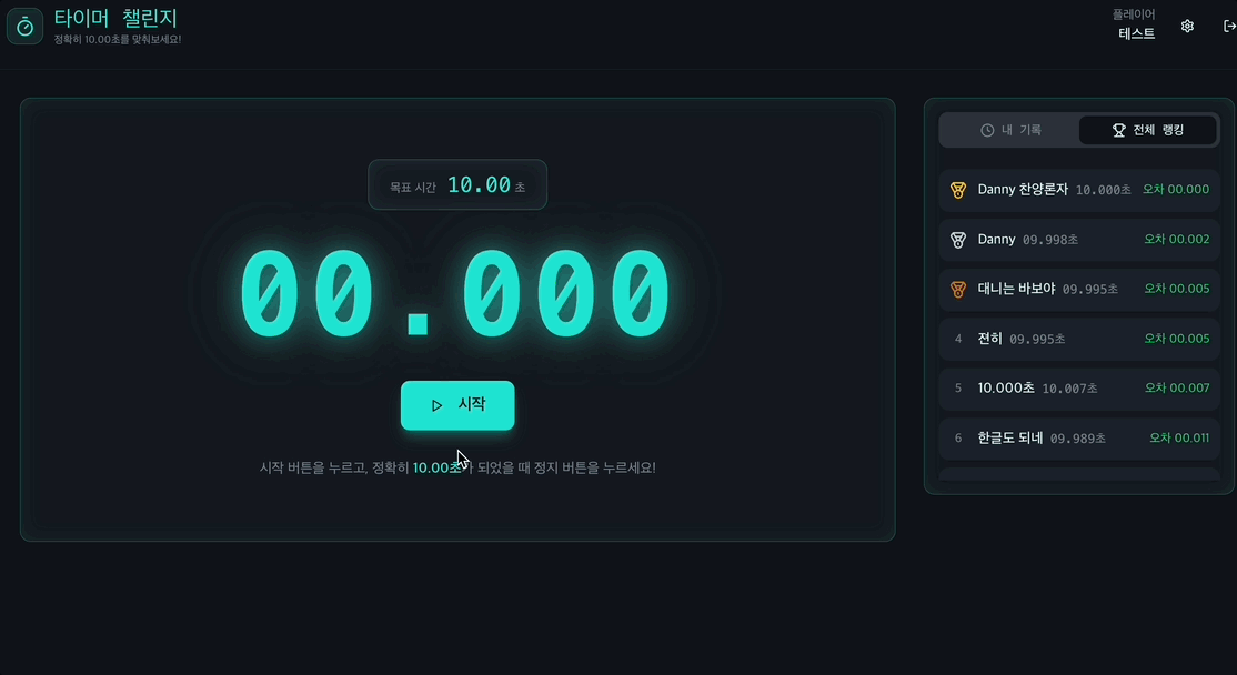 | POST | /api/games | 사용자 타이머 기록 저장 및 랭킹 반영 |